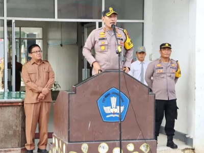 Polres Padangsidimpuan mengikuti upacara, bendera sekaligus melaksanakan Sosialisasi kenakalan Remaja dan Penggunaan Sosial Media di SMK Negeri 3 Padangsidimpuan, Senin