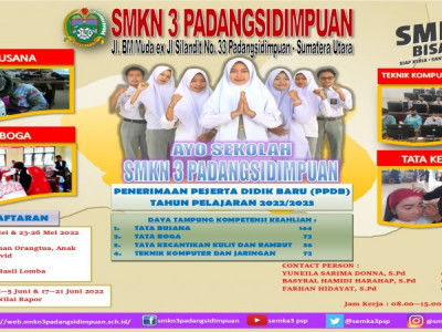 SMK Negeri 3 Padangsidimpuan menggelar acara Pesantren Kilat Ramadhan 1443 H mulai tanggal 13 - 15 April 2022. Dalam sambutannya