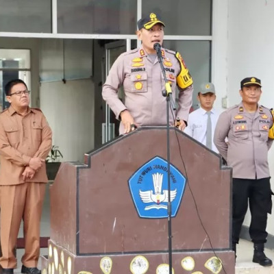 Polres Padangsidimpuan mengikuti upacara, bendera sekaligus melaksanakan Sosialisasi kenakalan Remaja dan Penggunaan Sosial Media di SMK Negeri 3 Padangsidimpuan, Senin